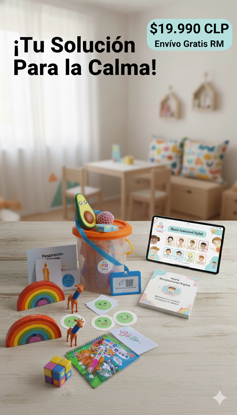 Este Kit un sistema completo que combina la guía educativa con 9 herramientas físicas diseñadas para la autorregulación de niños entre 3 y 8 años.
